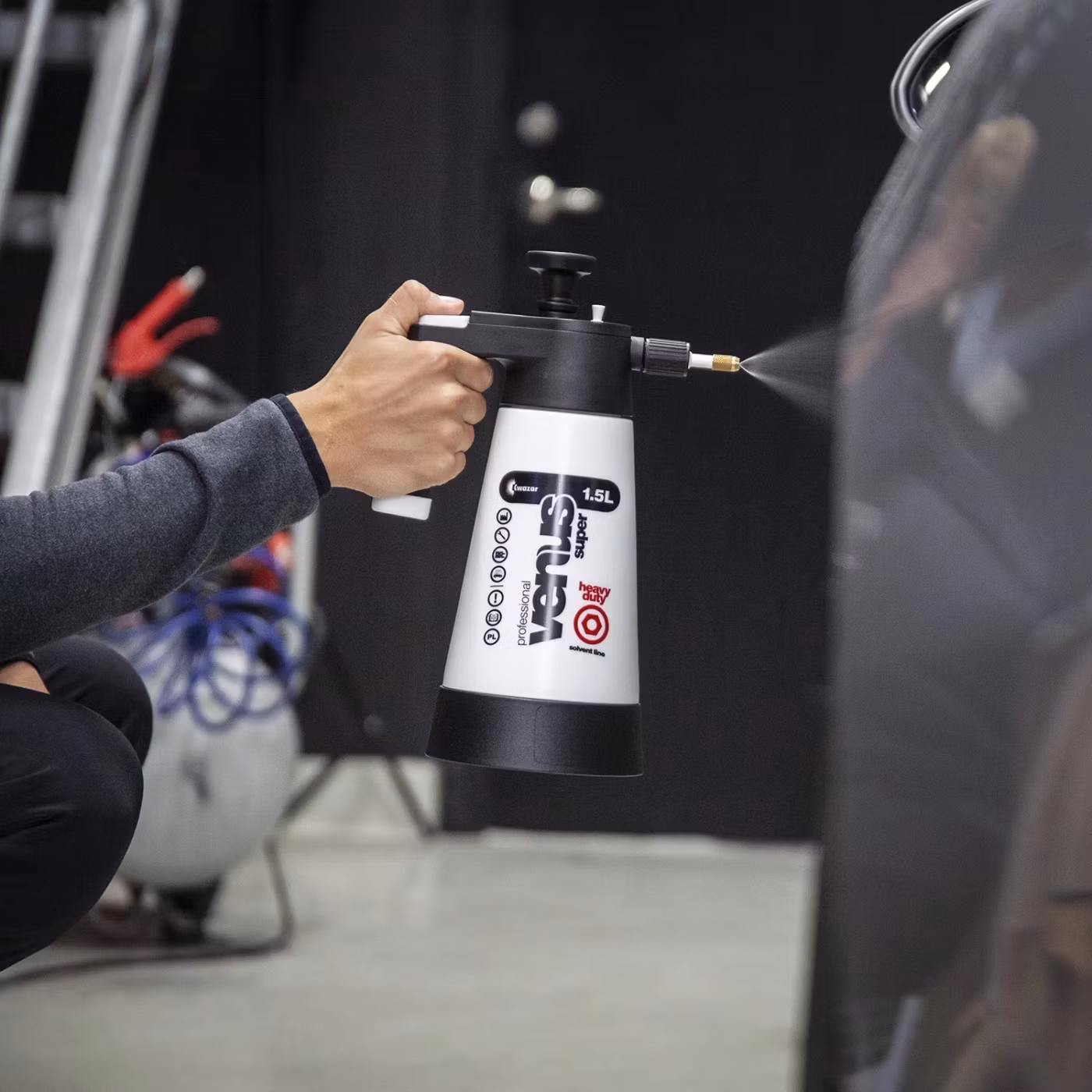 Avfettningstålig pumpspruta av högsta kvalitet, väl beprövad. Speciellt utvecklad för att tåla kraftiga avfettningar (ej alkalier), perfekt för påläggning av asfalt-/tjärlösare. Justerbart munstycke. Säkerhets/utsläppsventil. Pumpa upp tryck och få en jämn finjusterbar stråle som räcker länge.