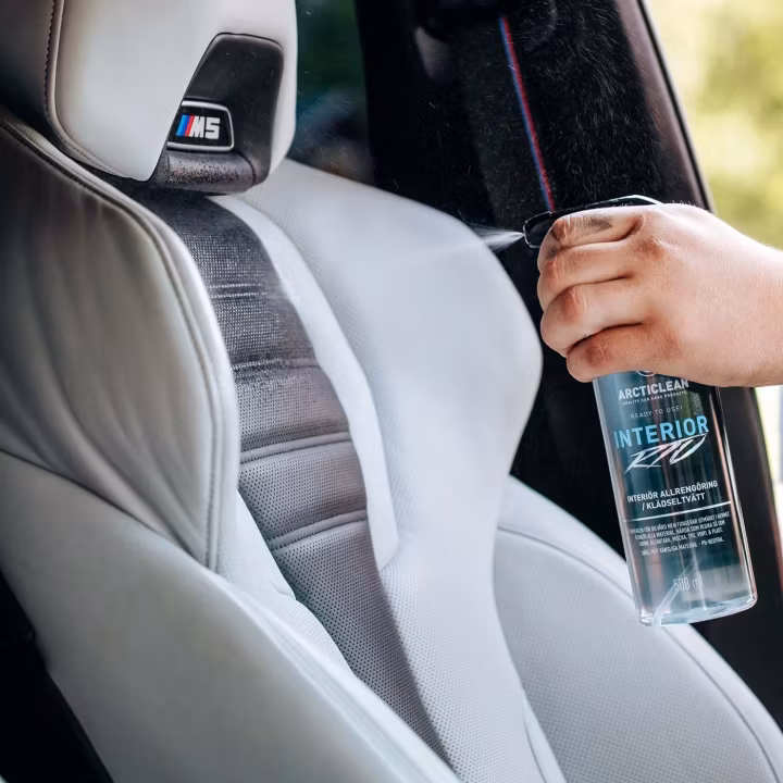 Ska du använda en klädseltvättmaskin rekommenderar vi att du sprayar Interior direkt på ytan. Bearbetar och sedan sköljer/suger upp med klädseltvätten.