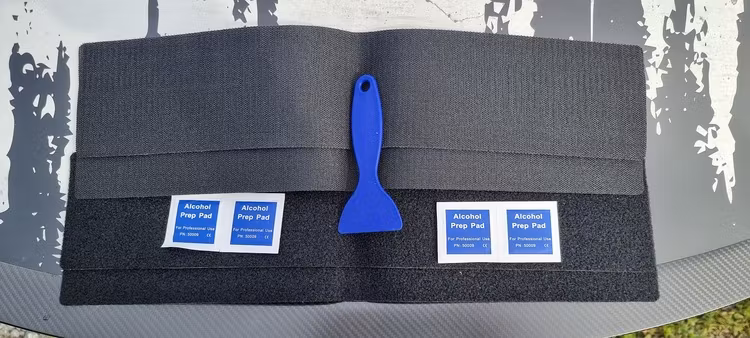 Komplett kit för både fram och bak. Färdigklistrad på båda styckena och rengöringsservetter och spatel ingår.