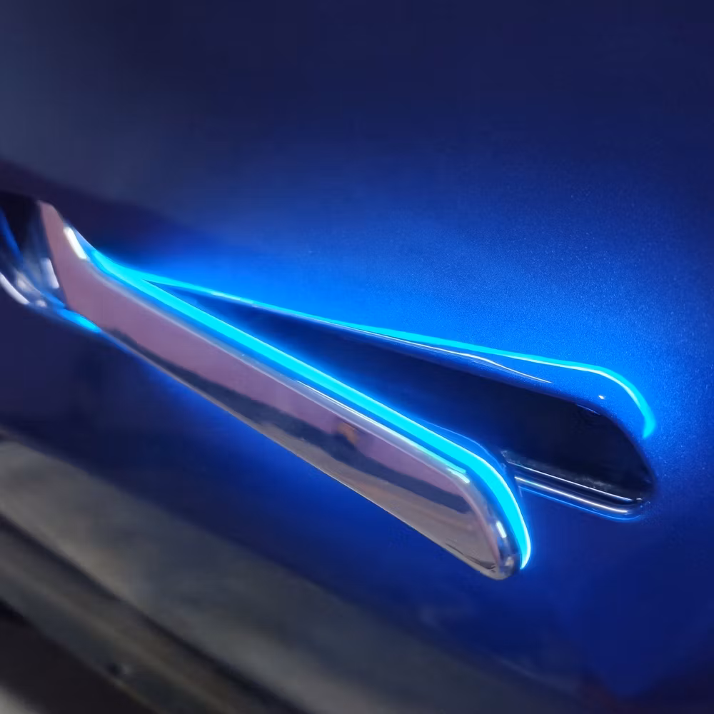 Handtagen viker ut sig och lyser upp så fort du närmar dig bilen och låser upp bilen.