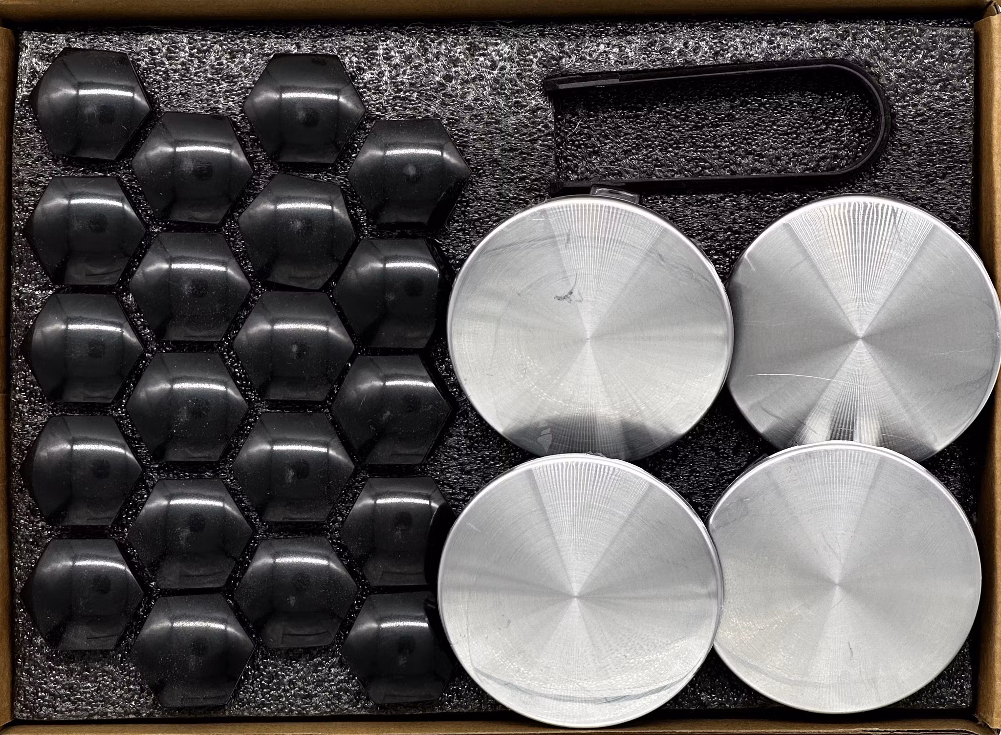 Tillfälligt parti med centrumkåpor till Tesla Model Y som passar bäst till originalfälgen Gemini 19 tum men även andra fälgar.