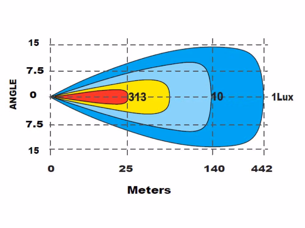 Bra kastlängd på ljuset med hela 1 lux vid 450 meter!